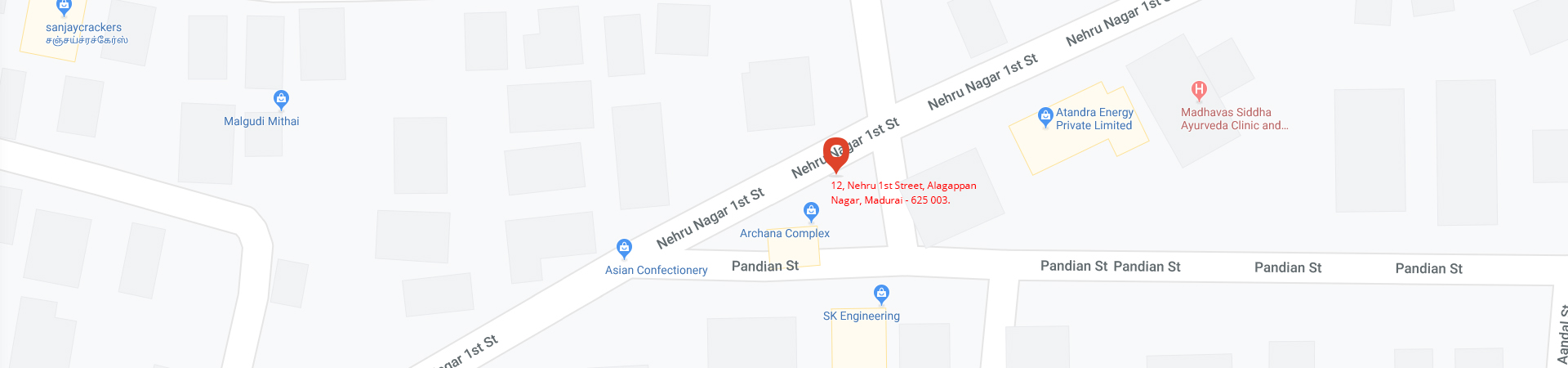 Address : 12, Nehru 1st Street, Alagappa Nagar, Madurai - 625003.